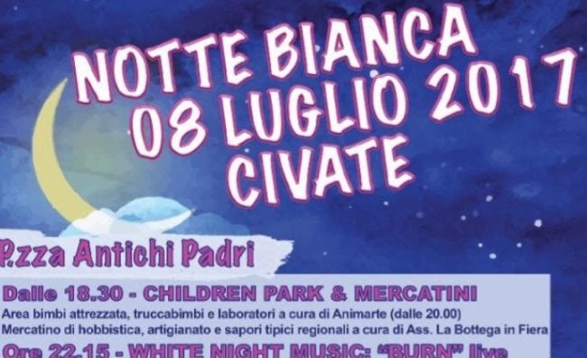 Anche quest’anno il Comune di Civate e la Parrocchia dei Santi Vito e Modesto, in collaborazione con il Gruppo Protezione Civile di Civate, le Associazioni e i commercianti, hanno organizzato la Notte Bianca prevista per sabato 8 luglio.