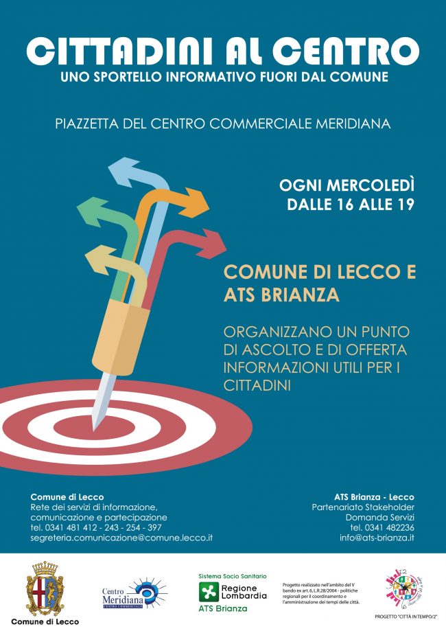 Dal 19 settembre, ogni mercoledì, aprirà uno sportello informativo nella piazzetta del Centro commerciale Meridiana di Lecco, dalle ore 16 alle 19.