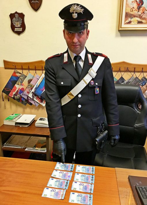 I militari, allertati proprio dal proprietario del distributore, hanno rintracciato l’uomo e lo hanno trovato in possesso di altre 7 banconote false da 20€.