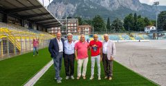 Sono ufficialmente partiti i lavori per la posa del nuovo terreno di gioco in erba sintetica all’interno dello stadio comunale Rigamonti-Ceppi. Quest’oggi si è tenuta la conferenza stampa di presentazione del progetto fortemente voluto dal Presidente Paolo Di Nunno e approvato dalla Giunta